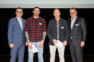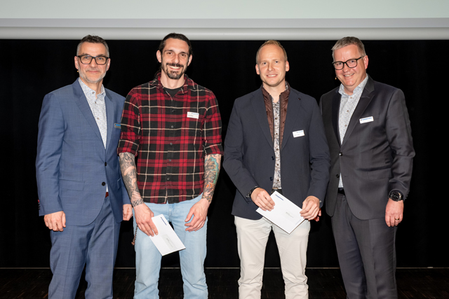 Daniel Peter, Vanoli AG Zofingen, und Markus Huber, Birchmeier Baumanagement, Döttingen, wurden für ihre bestandene Fachprüfung zum eidgenössisch diplomierten Baumeister geehrt.