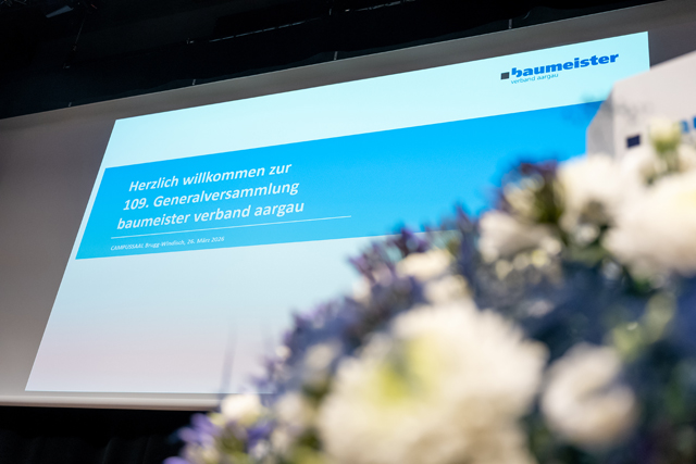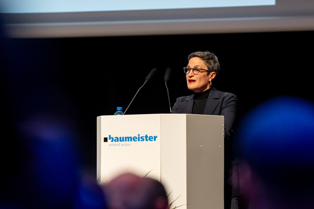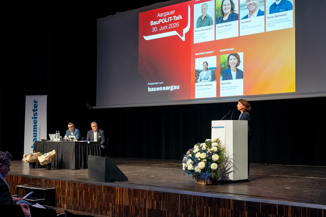 Landammann Stephan Attiger erwähnte in seiner Grussbotschaft die hohe Bautätigkeit, die auch an der grossen Zahl an Baubewilligungen gut sichtbar ist: «Der Aargau ist ein attraktiver Wohn- und Arbeitskanton und wächst um 10'000 Einwohner pro Jahr. Dies führt zu einer hohen Nachfrage an Dienstleistungen der Bauwirtschaft.» Als bedeutendes Bauprojekt mit grosser Signalwirkung nannte er VERAS (Verkehrsinfrastruktur-Entwicklung Raum Suhr), über das am 14. Juni 2026 abgestimmt wird.
