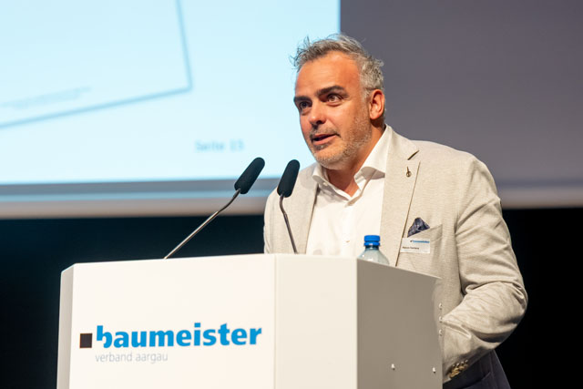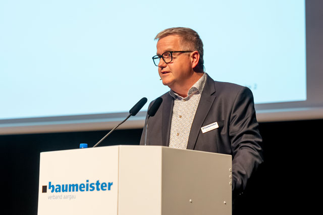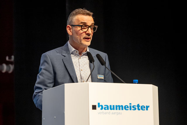 Ständerat Thierry Burkart gratulierte der Branche zum weiteren Marktwachstum bei hohem Niveau und nannte die Baubranche systemrelevant: «Als Baumeister tragen Sie massgeblich zur Weiterentwicklung der Schweiz bei. Und dies bei vielen Hürden und Einsprachen, die zu Verzögerungen führen.» Er nannte drei Aufgaben, die das Land beschäftigen: «die Sicherheitspolitik, die Versorgungssicherheit und der Ausbau der Strasseninfrastruktur vor allem auf der A1 im Aargau, um den Verkehrskollaps zu vermeiden.»