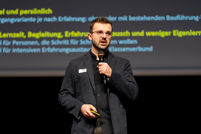 Thomas Weibel, Vizedirektor SBV (Schweizerischer Baumeisterverband) stellte unter anderem Construix, die intelligente KI-Hilfe für die Baubranche, vor. Damit können Baufirmen hilfreiche Informationen abrufen.