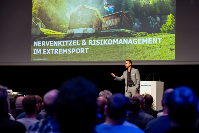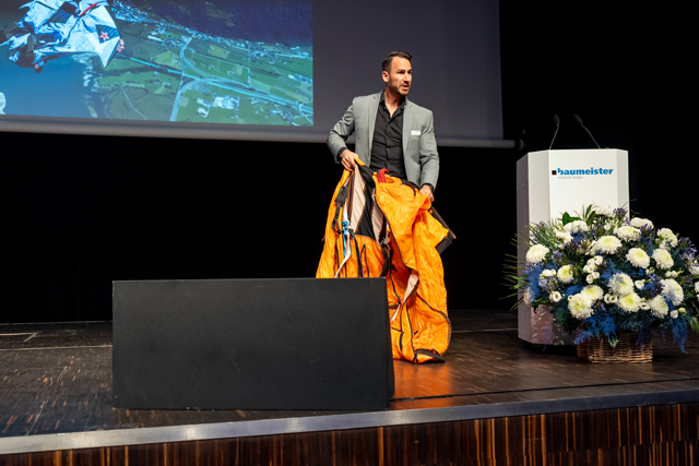 Der Abschluss der GV stand ganz im Zeichen von «Nervenkitzel und Risiko im Extremsport». Mathias Wyss, Wingsuit-Pilot und Cyber-Security-Experte, präsentierte in seinem Referat spektakuläre Luftaufnahmen und betonte dabei, wie entscheidend es ist, vor dem Sprung die richtigen Entscheidungen zu treffen: «Manchmal muss man kurz vor Erreichen des Absprungorts aus Sicherheitsgründen, entgegen dem ursprünglichen Ziel, den Abstieg antreten. Dieser Schritt kann nach all den Strapazen des Aufstiegs sehr schmerzhaft sein. Denn: Wer gibt schon gerne kurz vor dem Ziel auf? Doch letztlich kann genau dies notwendig sein, um lebensbedrohliche Risiken zu vermeiden. Ein häufiger Auslöser dafür ist beispielsweise ein plötzlicher Wetterumschwung. Die Aufgabe hat dann nichts mit Schwäche zu tun, sondern mit Erfahrung und dem Wissen, richtig zu entscheiden.» Gemäss Mathias Wyss lässt sich der Entscheid, etwas nicht um jeden Preis zu Ende zu bringen, auch auf Unternehmen übertragen: Aus Risikogründen kann es sinnvoll sein, ein Projekt abzubrechen, selbst dann, wenn es lange Zeit richtig erschien, es konsequent zu Ende zu führen.