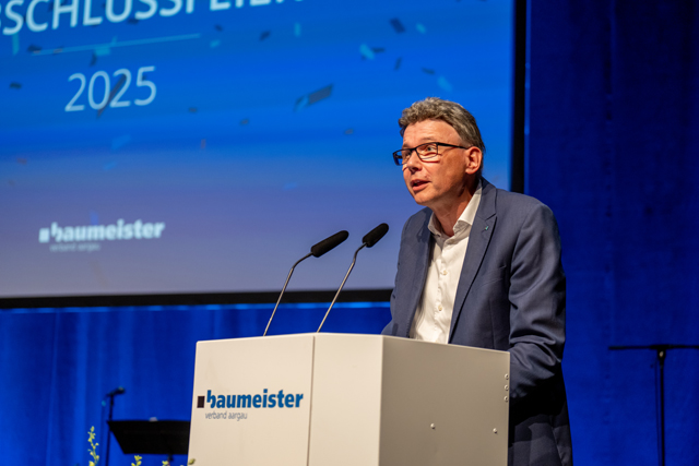Präsident Stefan Wittmer unterstrich in seiner Rede den Wert der Bauwirtschaft. «Die Baubranche ist eine der spannendsten und sichersten unserer Gesellschaft – denn gebaut wird immer!» Voller Leidenschaft zählte er die vielen Vorteile des Bauhandwerks auf: körperliche Fitness, gute Löhne, sichtbare Ergebnisse am Ende des Tages – und eine sichere Zukunft. «Man lernt nie aus. Seid offen für Neues, bildet euch weiter, baut weiter an eurer Zukunft. Stein für Stein.»