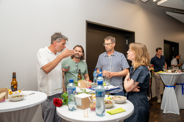 Zum Abschluss ehrte Timo Gisi noch eine ganz besondere Person: Eva Birchmeier, die gute Seele der Geschäftsstelle, wurde für ihren unermüdlichen Einsatz ebenfalls mit einer Rose bedacht. Danach übernahm nochmals die Band – und es war Zeit für Apéro, Fotos und viele persönliche Gratulationen.