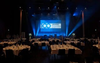 Der Campussaal in Brugg-Windisch bot am Donnerstagabend, 31. August 2017, den festlichen Rahmen für die stimmungsvolle Jubiläumsfeier mit viel Prominenz aus Wirtschaft und Politik. Marie Louise Werth führte charmant durch den Abend.